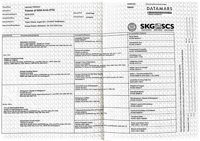 PCR (Exon 2) N/N, EIC N/N, HNPK N/N, SD2 N/N, CNM N/N, prcd-PRA N/N, OSD N/N, STGD N/N